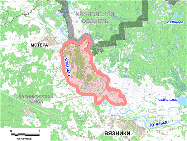 Вязниковский район, в пойме левого берега р. Клязьма в окрестностях озёр Монастырское и Никольская старица; на землях лесного фонда Вязниковского лесничества, землях сельскохозяйственного назначения и землях водного фонда.